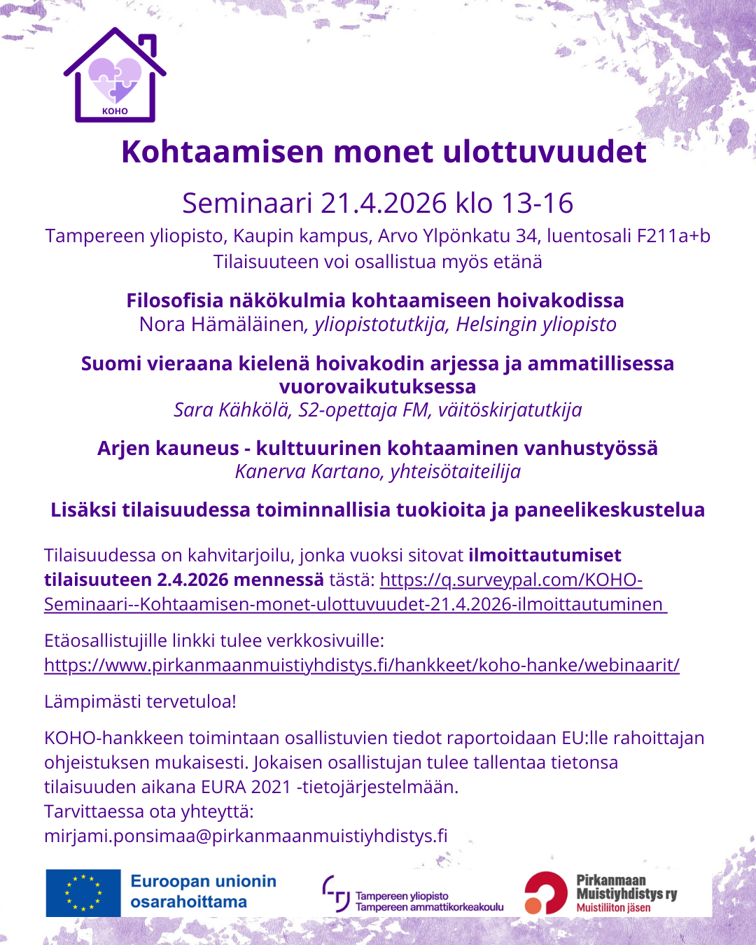 Webinaarit on tarkoitettu hoivakotien työntekijöille ja niissä tarvitsee tehdä vahva tunnistautuminen Eura2021 järjestelmään.