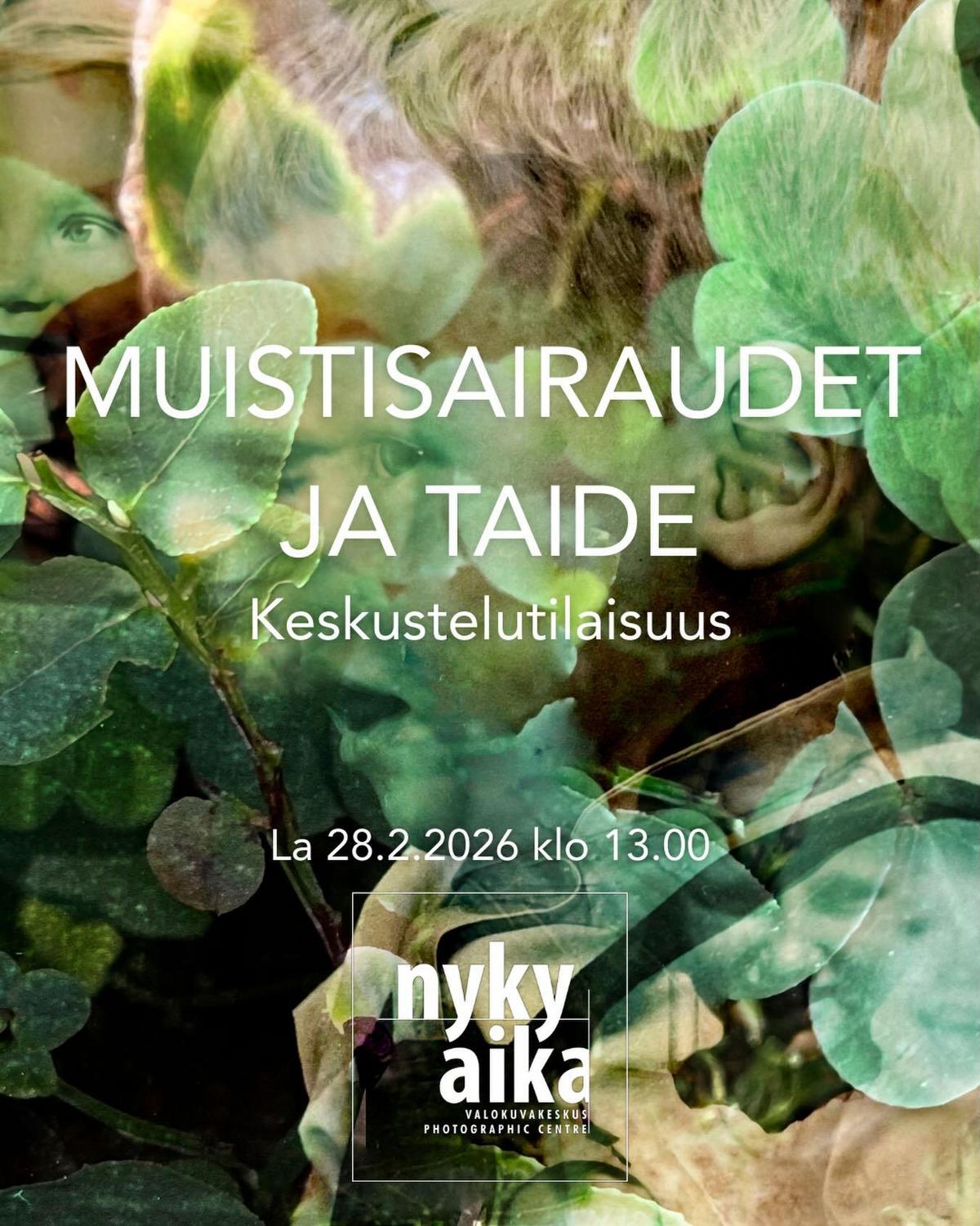 Valokuvakeskus Nykyajassa järjestetään lauantaina 28.2. klo 13 keskustelutilaisuus aiheesta muistisairaudet ja taide. Panelisteina ovat runoilija ja kirjallisuudentutkija Toni Lahtinen, kirjailija ja kirjantekijä Antti Nylén sekä Pirkanmaan Muistiyhdistyksen toiminnanjohtaja Teija Siipola.